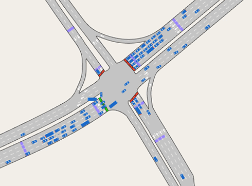 يتم تحليل التدفقات المرورية، وتوزيعات الاتجاهات، ومواقع الاختناقات داخل شبكات الطرق الحضرية، بهدف تطوير بدائل تحسين للتقاطعات والطرق تسهم في رفع كفاءة الحركة المرورية العامة